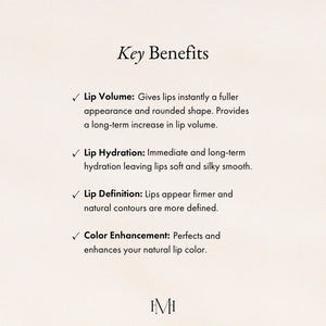 Objem rtů: Dodává rtům okamžitě plnější vzhled a zaoblený tvar. Dlouhodobě zvětšuje objem rtů.