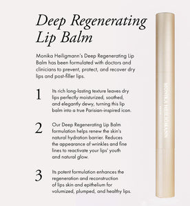 Folosit ca tratament post-umplutură hialuronică, balsamul nostru pentru buze Deep Regenerative Lip Balm este formulat special pentru a hrăni epiteliul buzelor în urma aplicării umpluturii cu acid hialuronic.